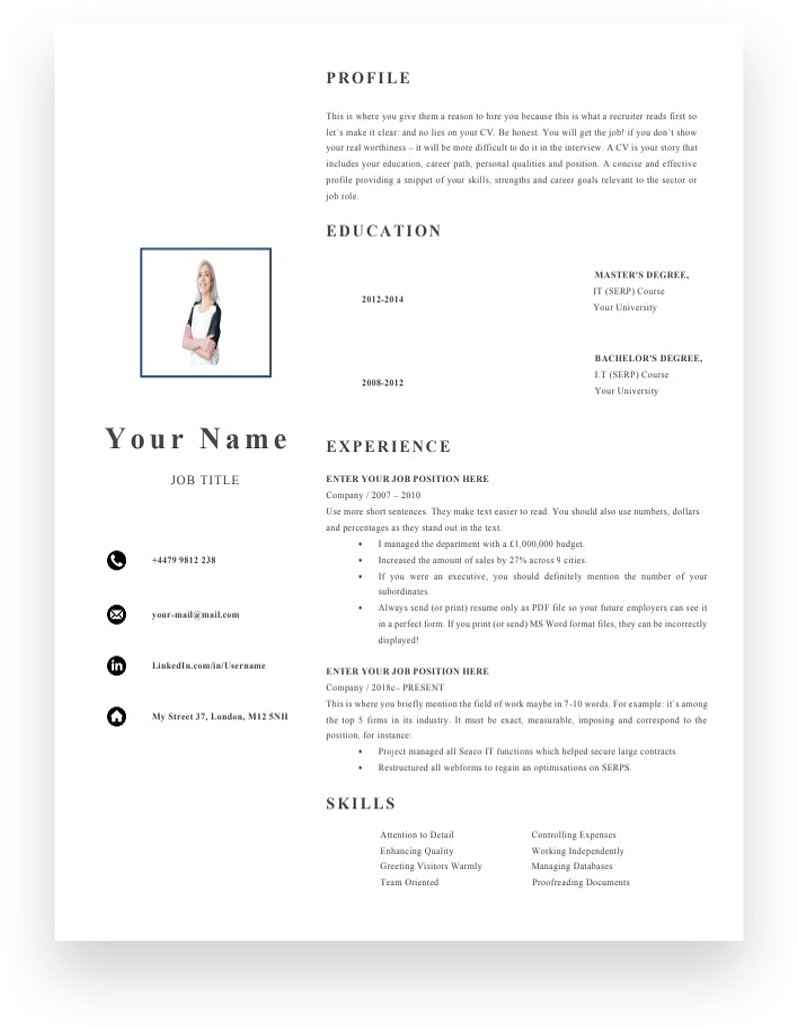 Job-ready editable Store Assistant CV Template, with intext assistance.